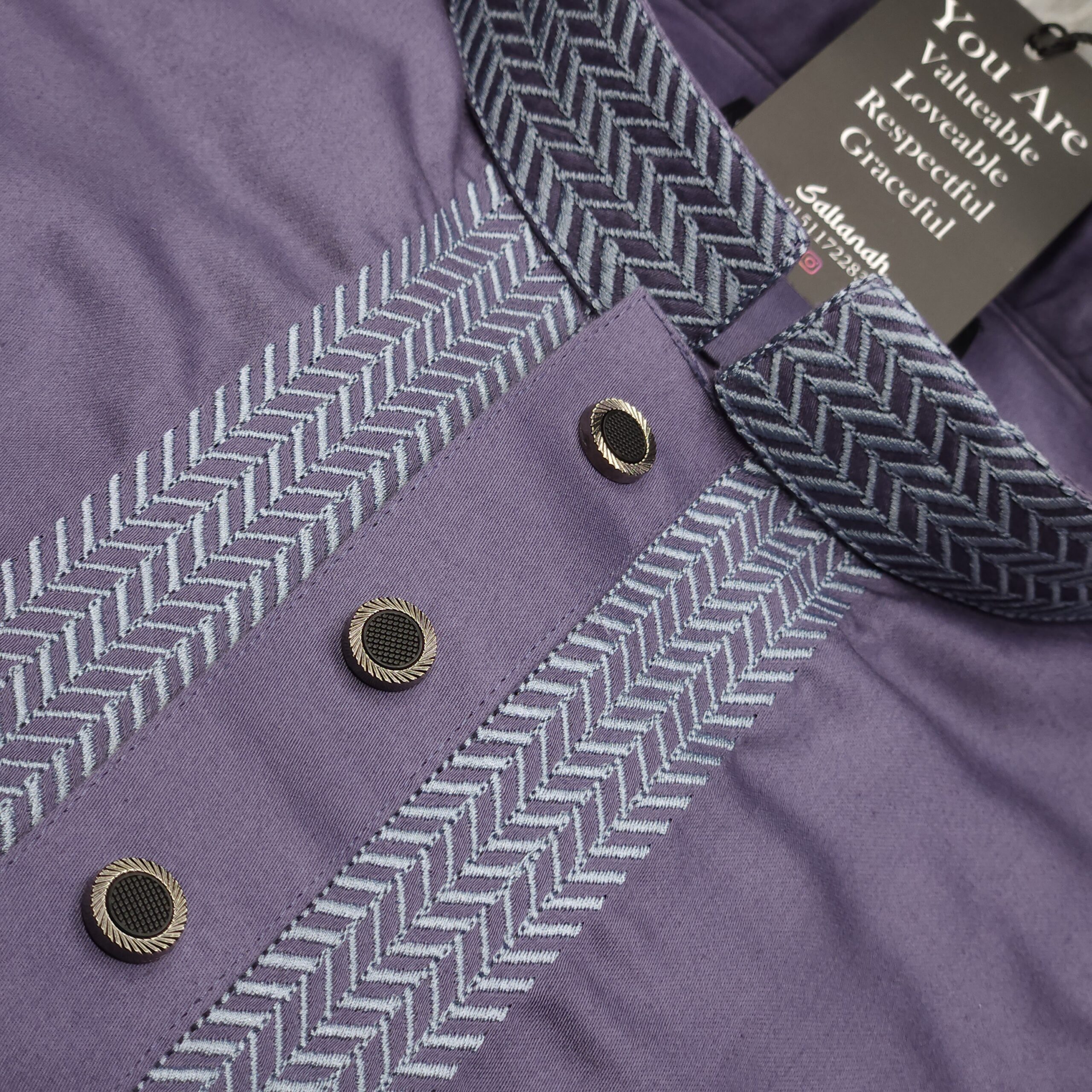 • This embroidery is prominently placed along the collar edges and the button placket.