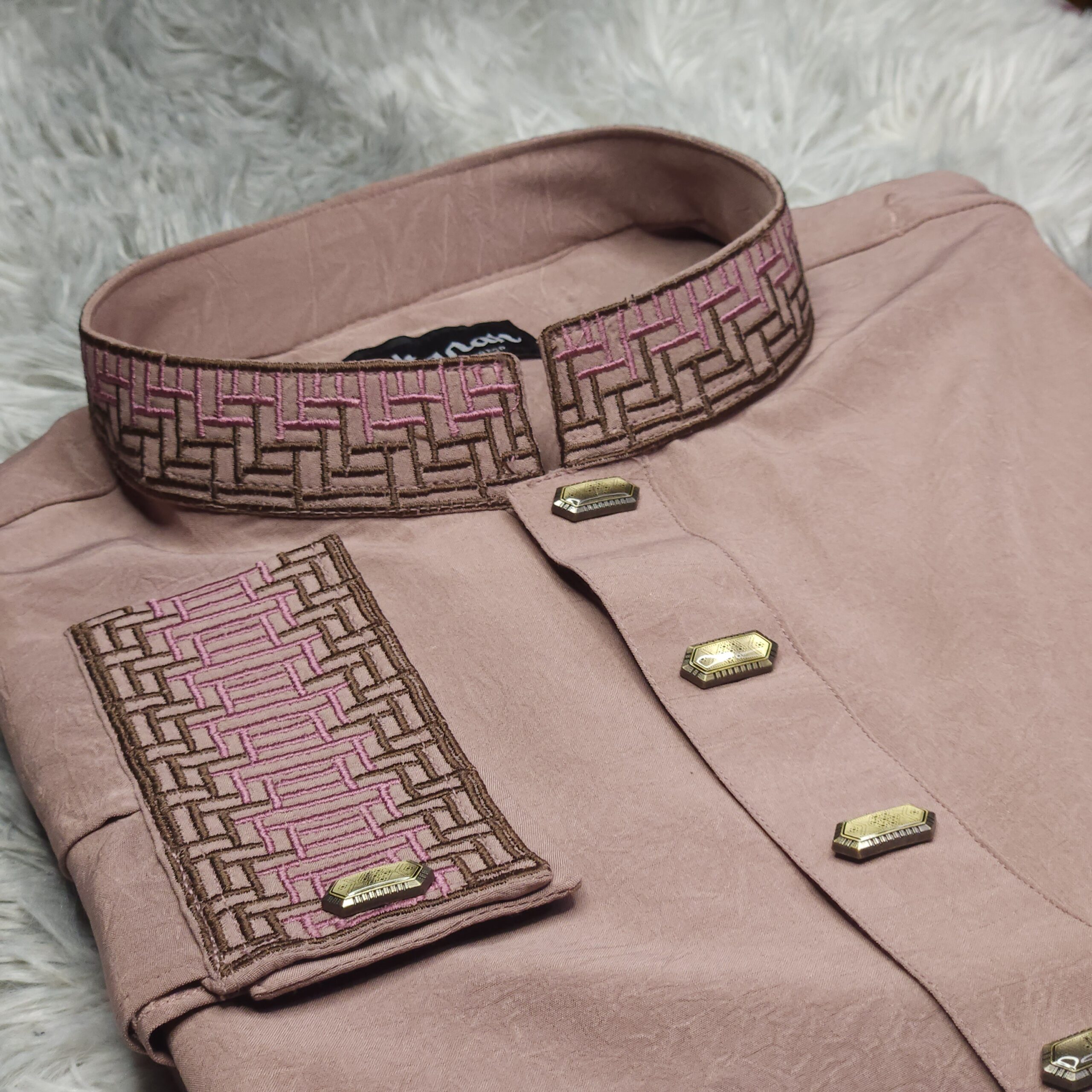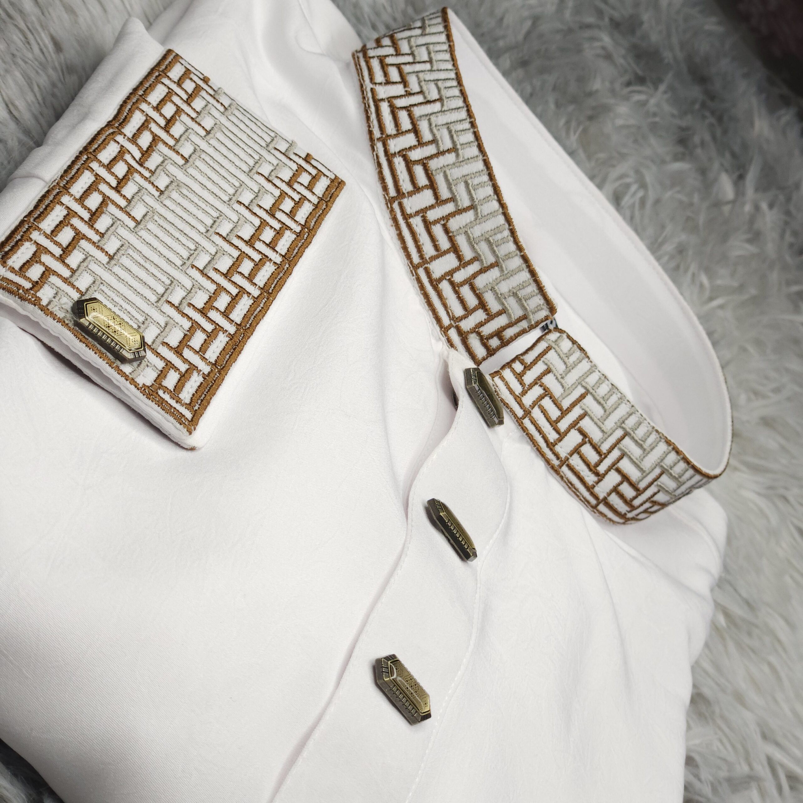 The fabric appears to have a crinkled or “washed” texture. This organic, slightly uneven surface is characteristic of premium venture fabrics, giving it a modern, breathable feel compared to the structured jacquards of the other models. The collar and the chest panel feature a geometric “interlocking” or “maze” pattern.